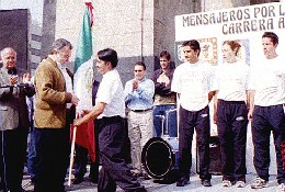 Abandera el GDF a atletas que viajarán a EU 2003-10-12 MVS México, 12 Octubre.- El gobierno del Distrito Federal respaldará plenamente todas y cada una de las iniciativas que se tomen para garantizar el respeto a los derechos de los trabajadores migratorios mexicanos en Estados Unidos, afirmó Alejandro Encinas Rodríguez. Al encabezar la ceremonia de abanderamiento de los integrantes de la Segunda Carrera Antorcha Guadalupana 2003, en representación del jefe de Gobierno, Andrés Manuel López Obrador, el Secretario de Gobierno de la ciudad convocó a los atletas a portar con orgullo la enseña nacional por el territorio estadounidense. Esta carrera, indicó el funcionario, que va desde la ciudad de México hasta la de Nueva York, tiene el objetivo de mantener los rasgos de vínculo, de relación e identidad, con los compatriotas que por distintas causas se han visto obligados a buscar una mejor oportunidad de vida en otras tierras. Encinas Rodríguez subrayó