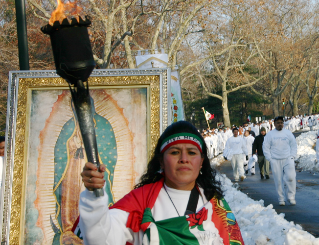 The International Run Carrera Antorcha Guadalupana Mexico-New York is a relay run from Mexico City to New York that brings together two nations and thousands of families divided by the border. Departing from the most sacred place in Mexico, the Basilica of Our Lady of Guadalupe, the torch passes through every state where families of immigrants reside. In this run, family members of Mexican immigrants carry a torch in Mexico which will be touched later on by their relatives who live in the New York City area.